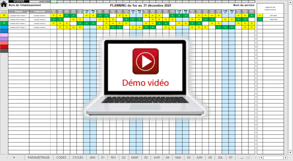L’application se charge du reste en adaptant le planning à la période sélectionnée, aussi bien au niveau du contenu que de sa mise en forme !