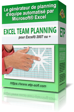 EXCEL-TEAM-PLANNING est une application simple et gratuite (y compris la version PRO) qui fait de Microsoft® Excel un véritable générateur de plannings d’équipe !